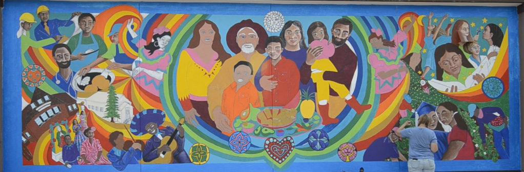 Having these conversations sparked unexpected opportunities for families and individuals to feel seen and included while celebrating the shared striving of young and old. Experiencing this reaction of Latinx community members made lead artist Reeva Wortel and her team curious to explore how they might expand this effort in a way that includes a broader spectrum of people and communities in Estacada.